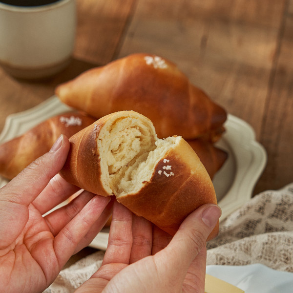 발효버터로 만든 소금빵, 매장에서 구워 소금만 데코해 주시면 좋습니다.