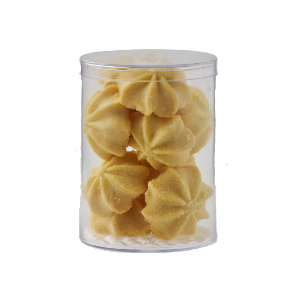 플라스틱 쿠키통에 담겨진 고급스러운 버터쿠키